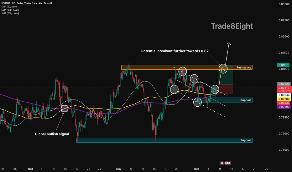 USDCHF: bullish breakout🛠 Technical Analysis: On the 4-hour timeframe, USDCHF triggered a "Global bullish signal" wit...