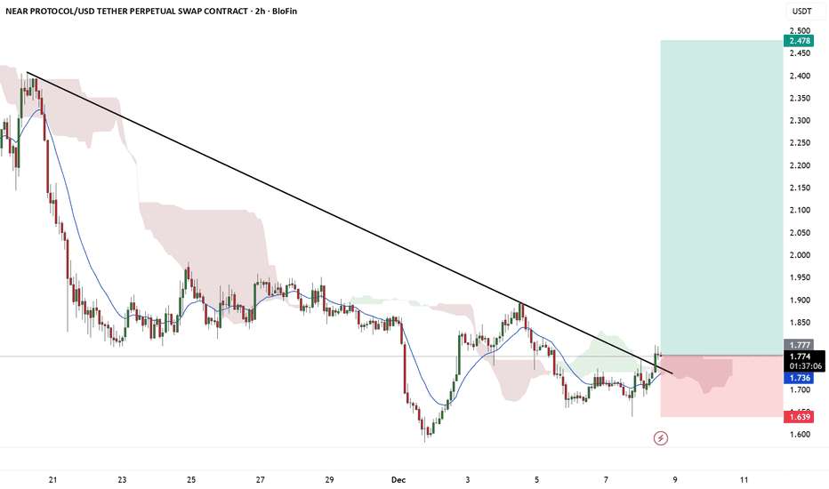 $NEAR/USDT ANALYSISNEAR/USDT on the 2-hour chart is trading at 1.77 and has just broken above the descending trendline, ...