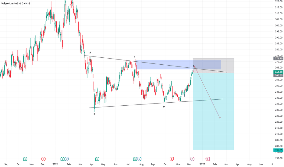 wiprore- setup ...now valid for short same triangle pattern formed potentian for sell...