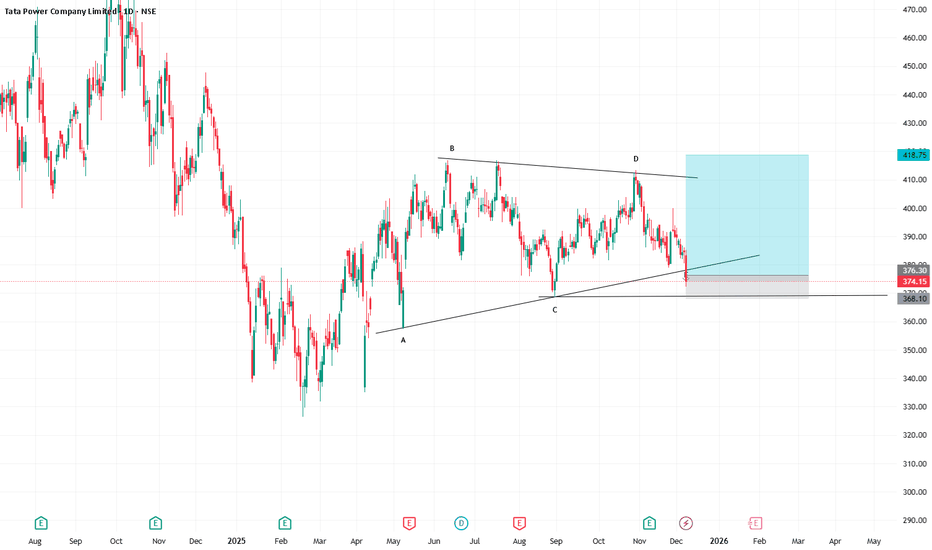 tata power stock potential for longa triangle pattern formation . elliot wave abcde pattern chance to go long on day tf...
